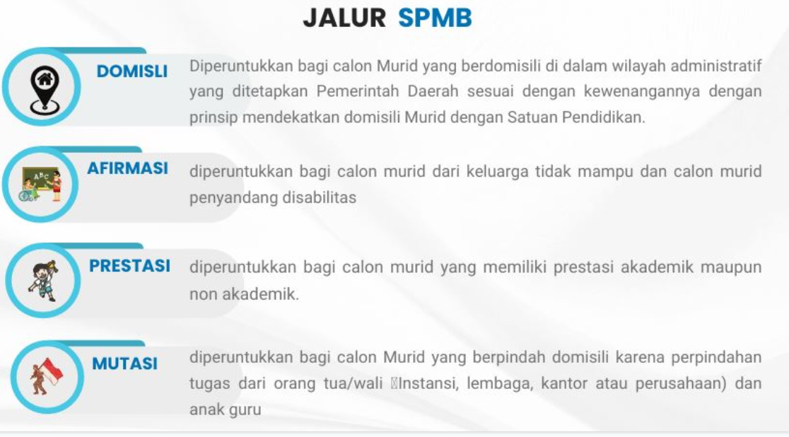 Jalur Domisili Radius | Jalur Domisili Wilayah | Jalur Prestasi | Jalur Afirmasi | Jalur Mutasi |